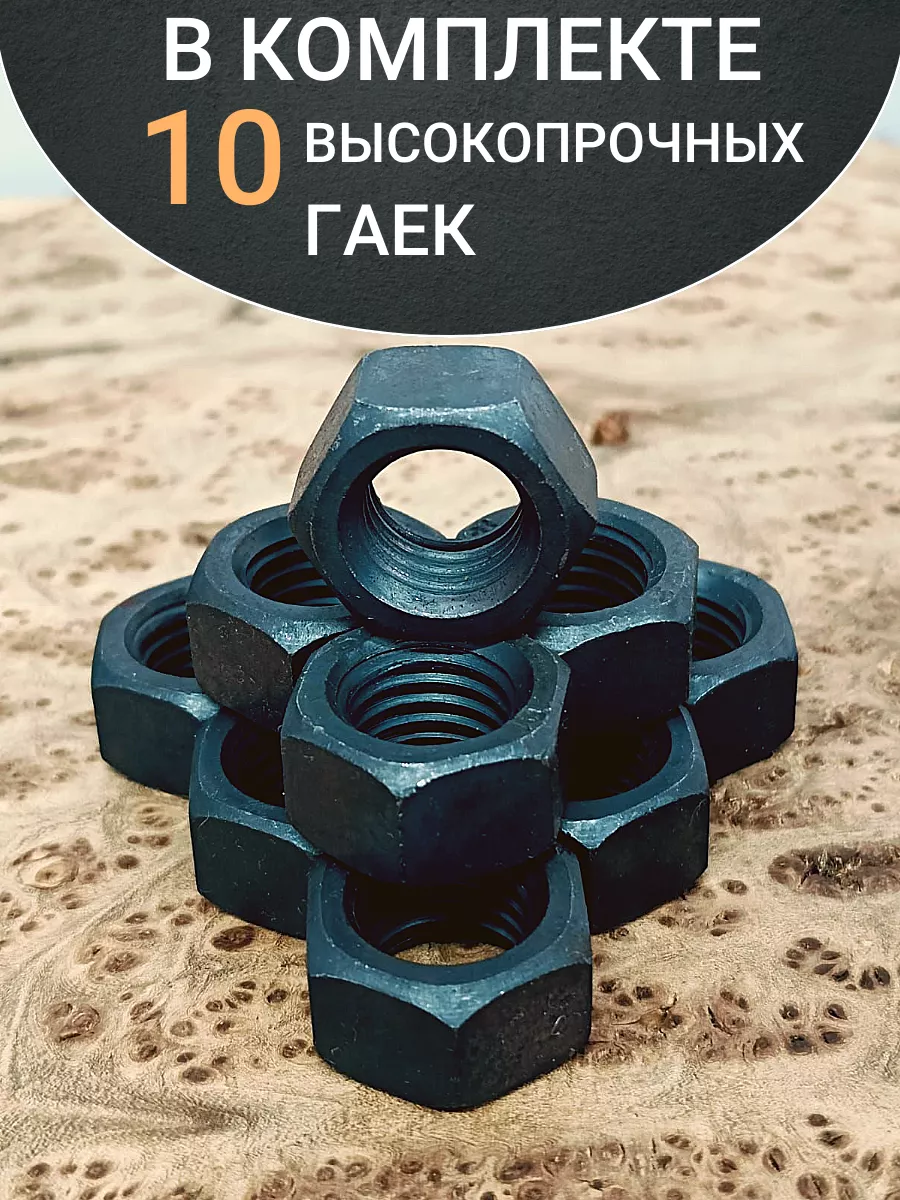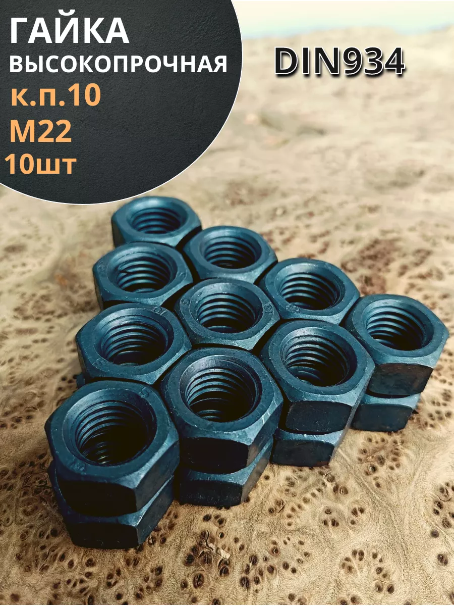 Гайка М22 высокопрочная черная к.п.10 DIN934, 10 шт.