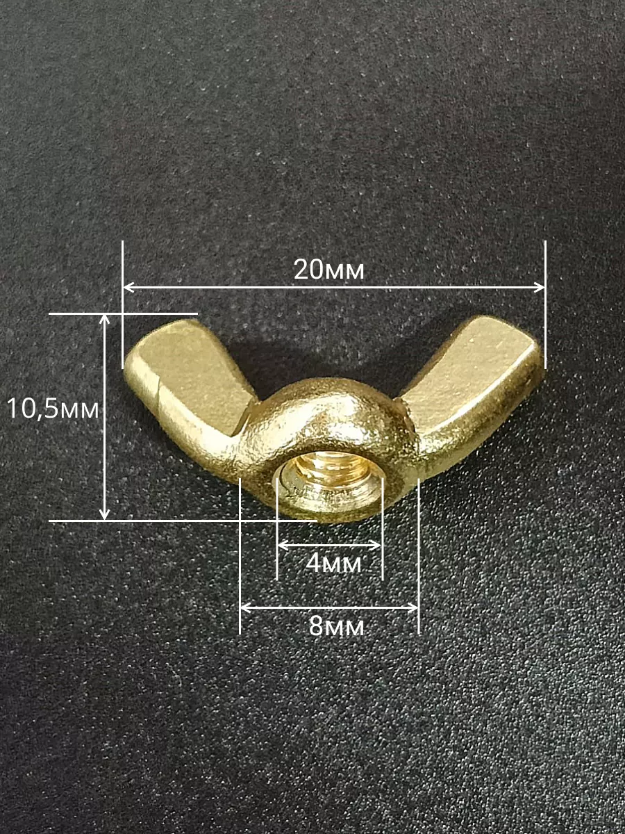 Гайка М4 латунная барашковая DIN315, 10 шт.
