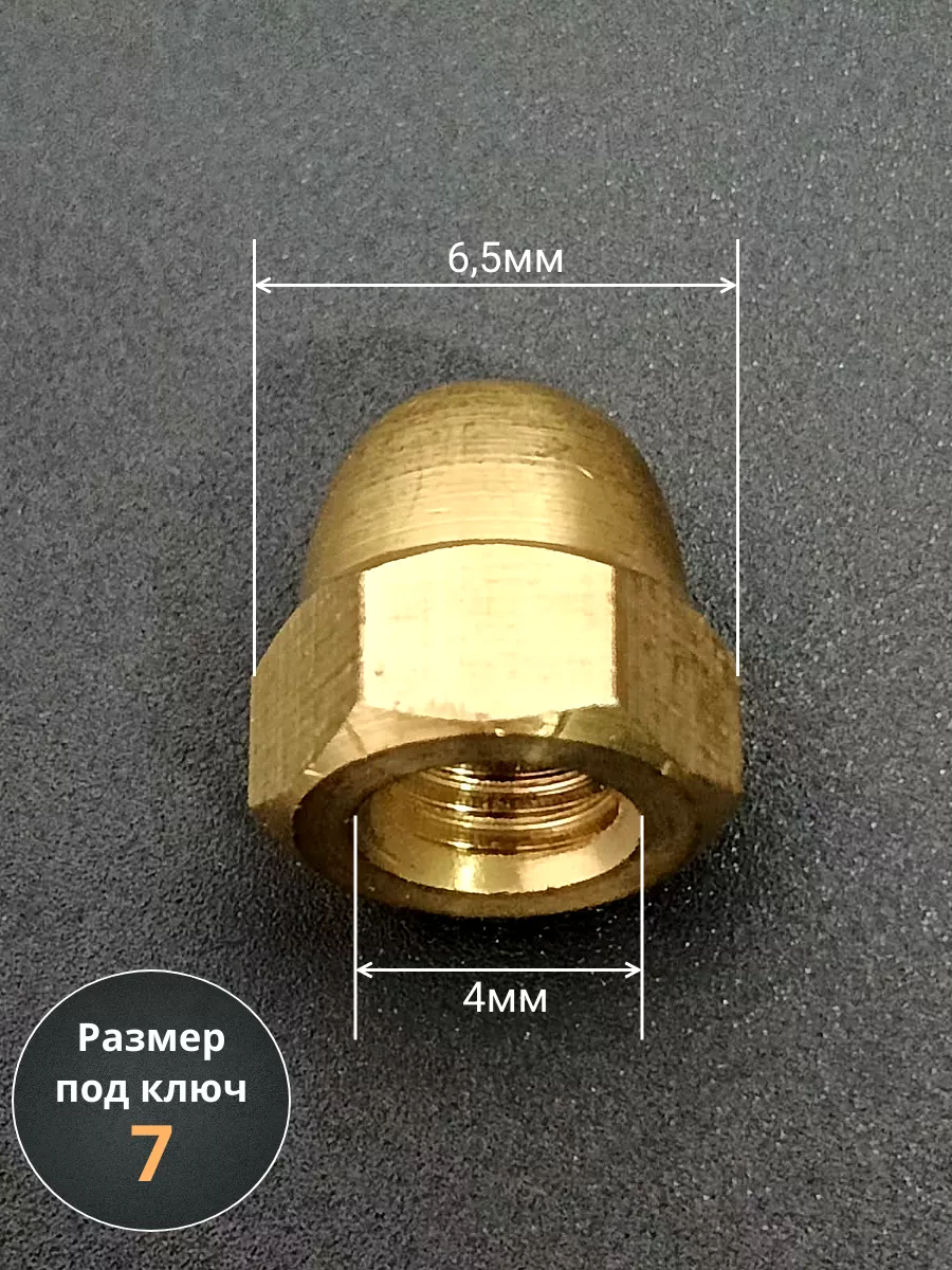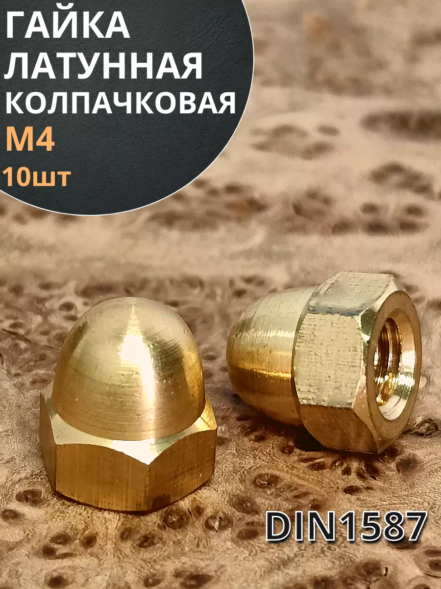 Гайка М4 латунная колпачковая DIN1587, 10 шт.