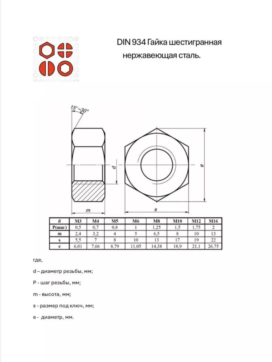 | Гайка нержавеющая М3,4,5,6,8,10,12 DIN934 (по 10 шт) | 11600 | 1 шт. |