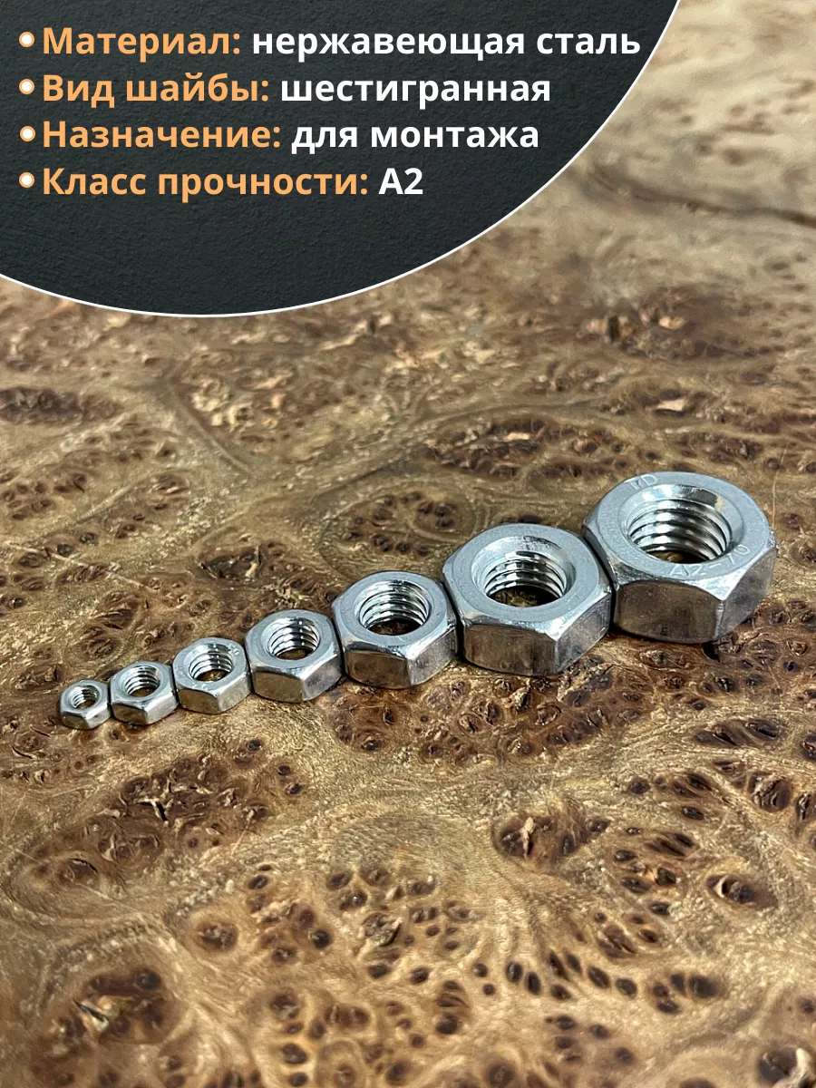 Гайка нержавеющая М3,4,5,6,8,10,12 DIN934 (по 50 шт)
