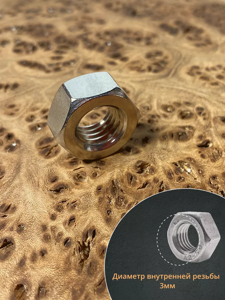 Гайка Нержавеющая М3 DIN 934 шестигранная 100 шт
