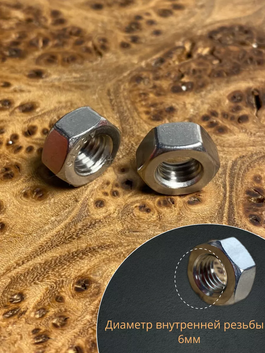Гайка Нержавеющая М6 DIN 934 А2 шестигранная 10 шт