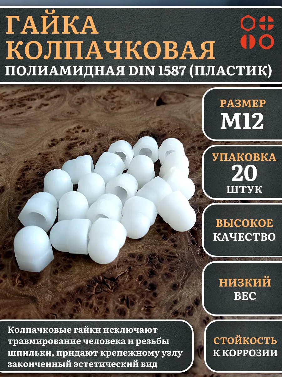 Гайка полиамидная колпачковая (пластик) М12 DIN1587, 20 шт.