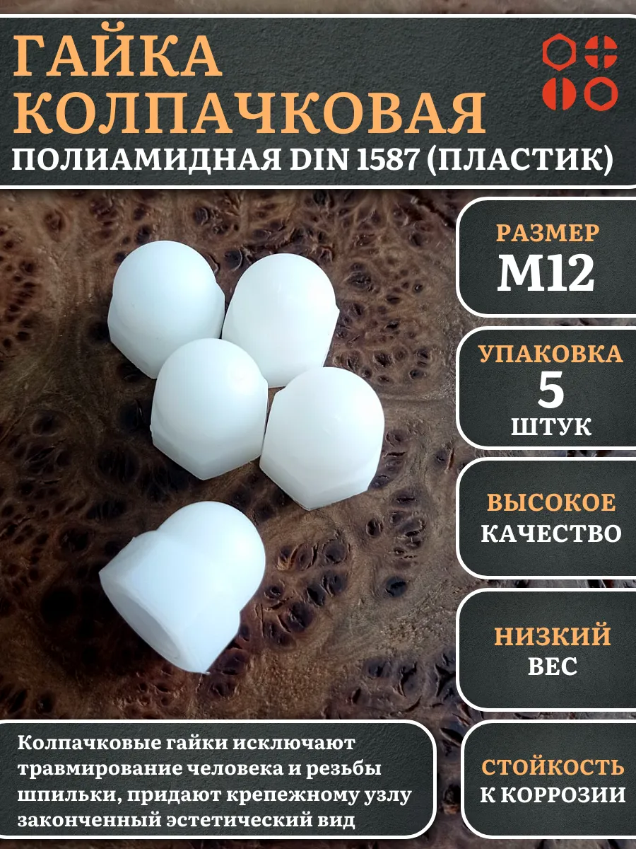 Гайка полиамидная колпачковая (пластик) М12 DIN1587, 5 шт.
