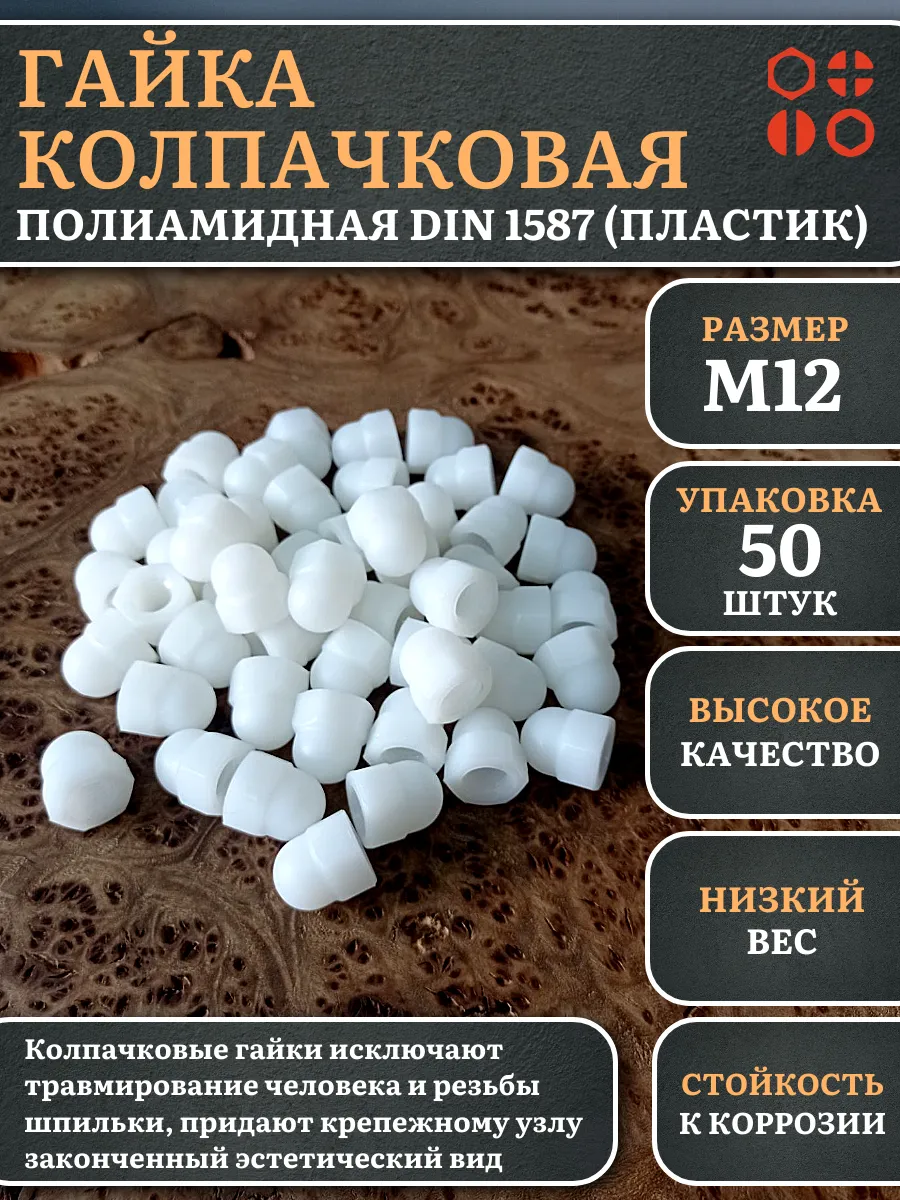 | Гайка полиамидная колпачковая (пластик) М12 DIN1587, 10 шт. | 2000000644240ф10 | 1 шт. |