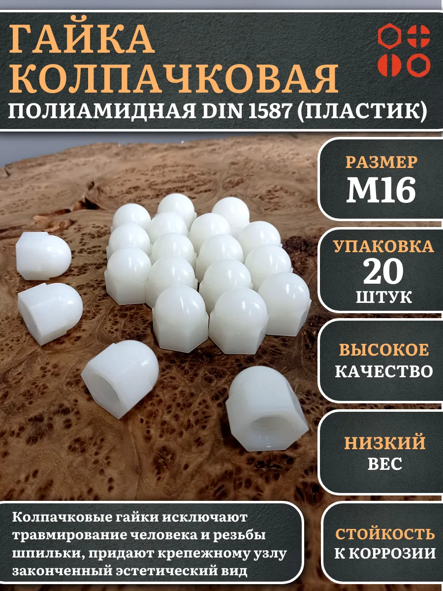 | Гайка полиамидная колпачковая (пластик) М16 DIN1587, 50 шт. | 2000000644257ф50 | 1 шт. |