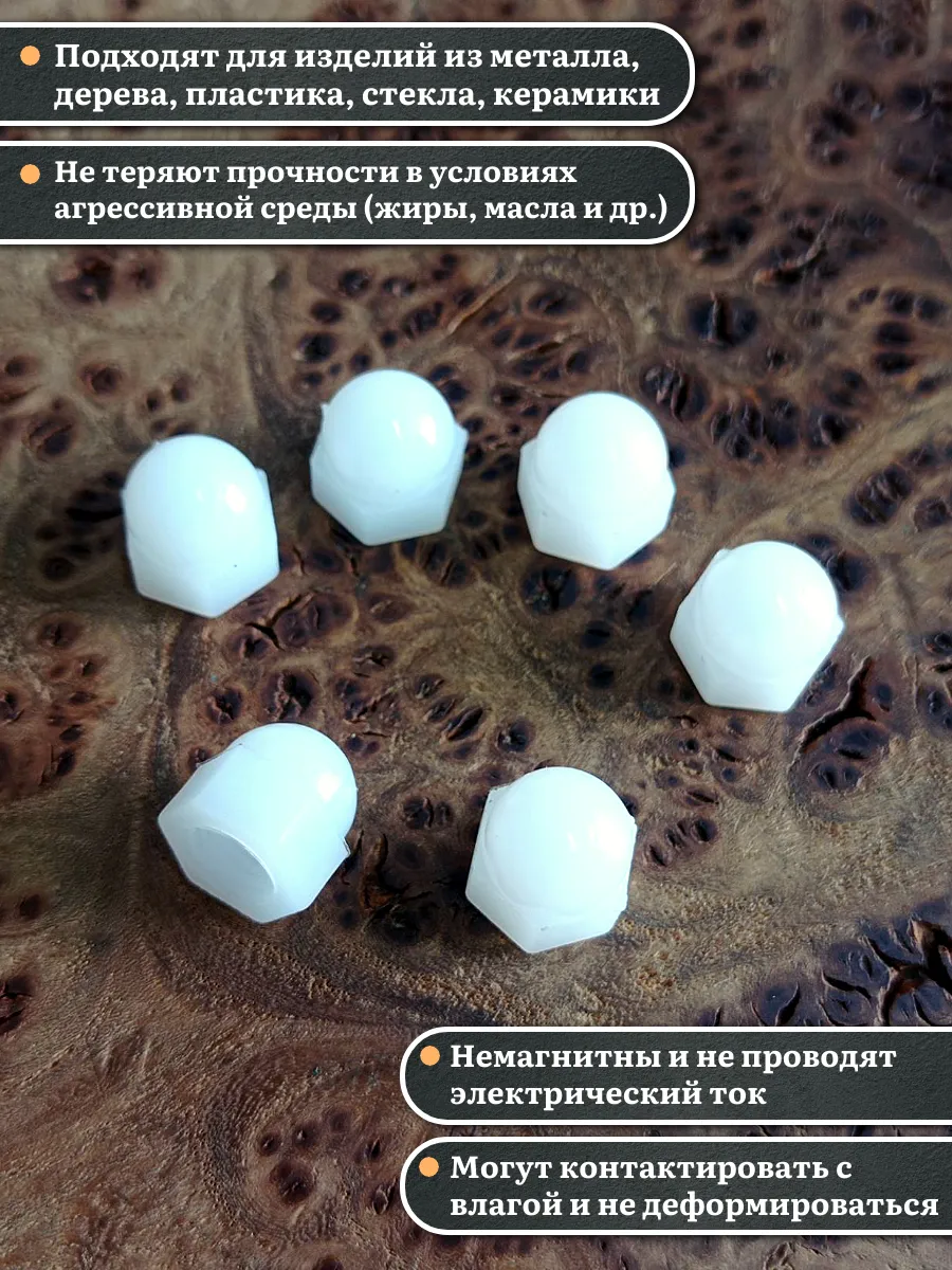Гайка полиамидная колпачковая (пластик) М6 DIN1587, 50 шт.