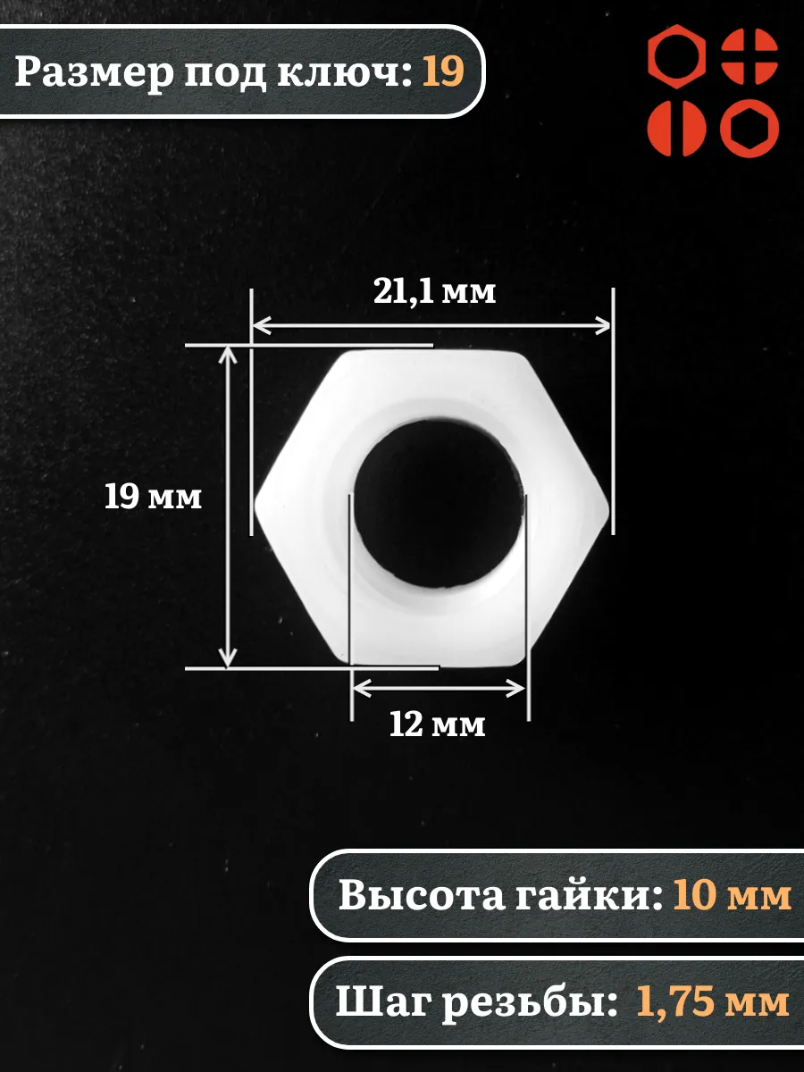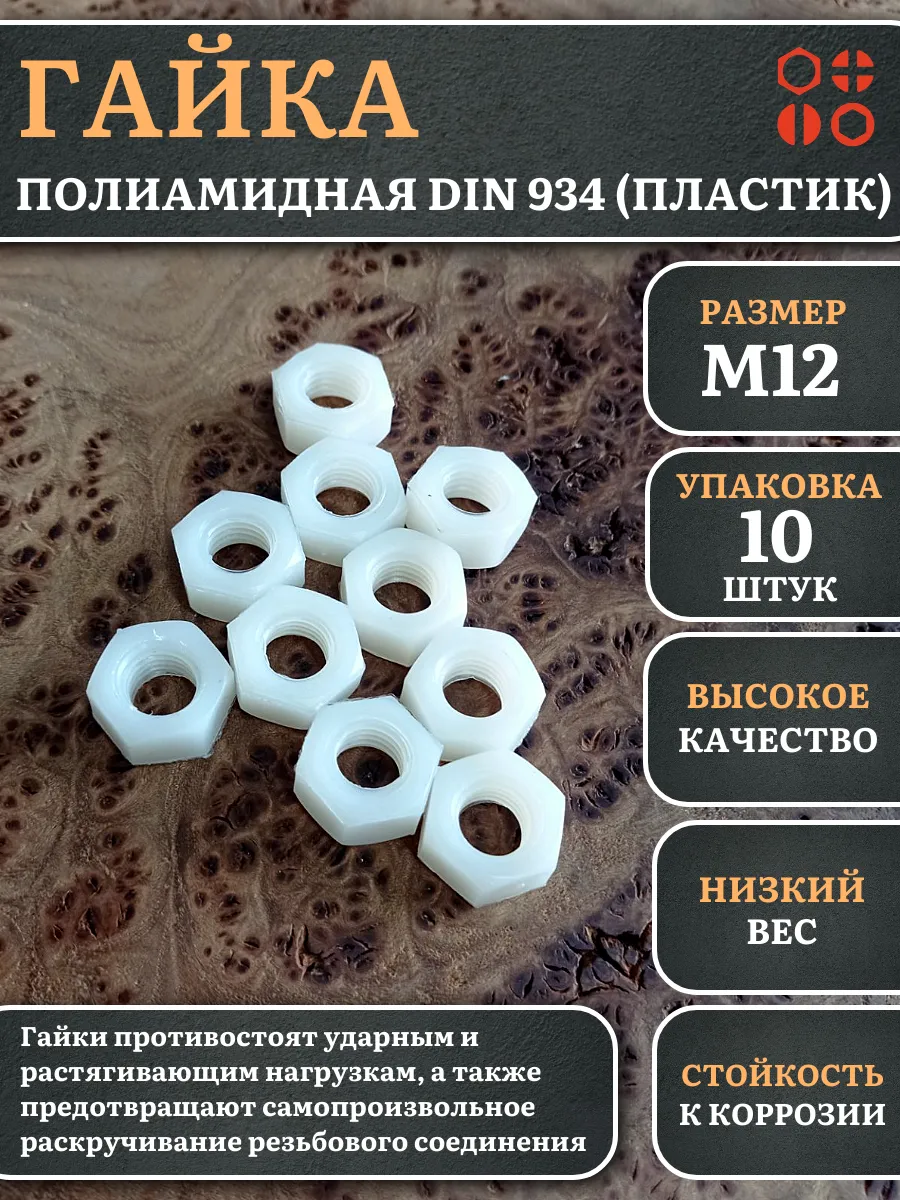 Гайка полиамидная М12 DIN934 (пластик), 10 шт.