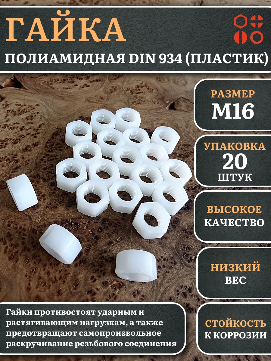 Гайка полиамидная М16 DIN934 (пластик), 20 шт.