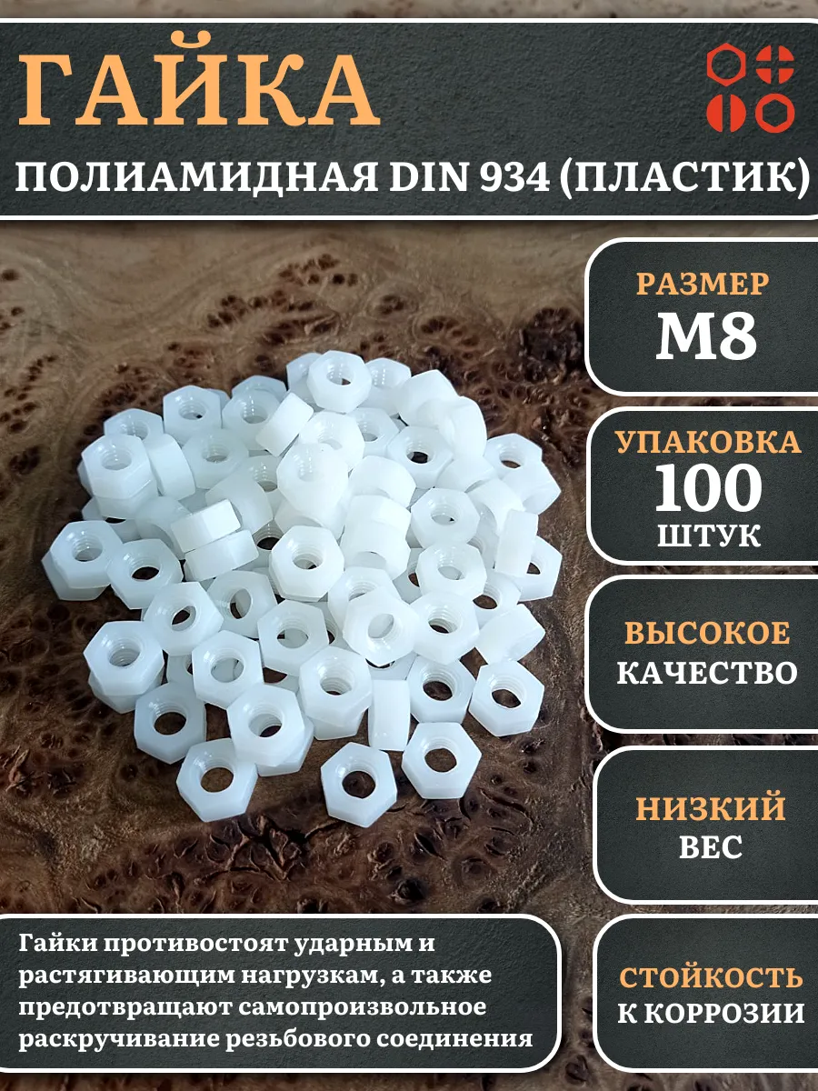 Гайка полиамидная М8 DIN934 (пластик), 100 шт.