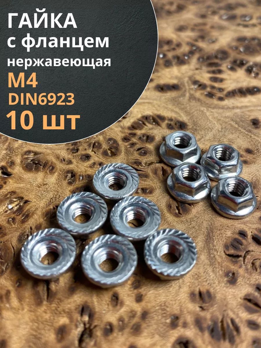 Гайка с фланцем нержавеющая М4 DIN 6923 (10 шт.)