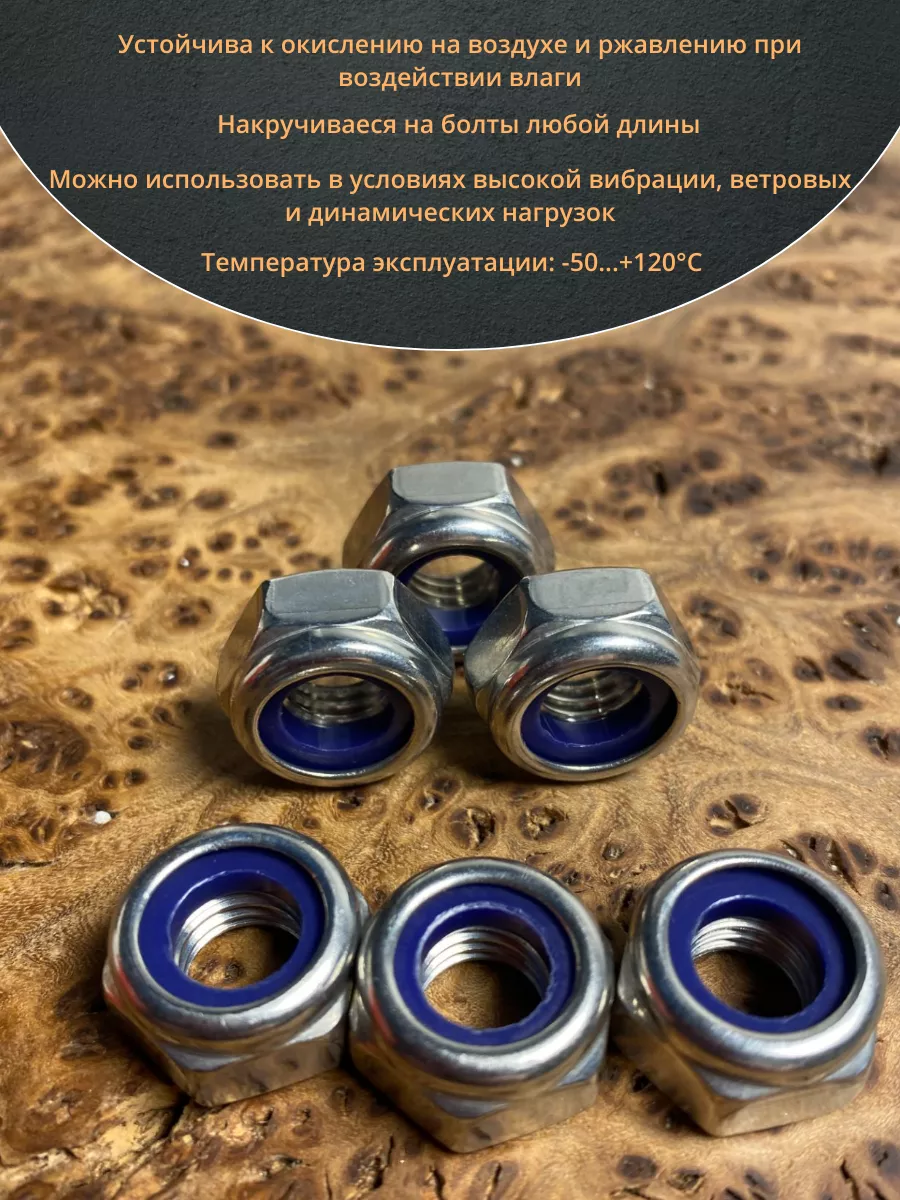 Гайка со стоп кольцом М10 нержавеющая, DIN985, 100 шт.