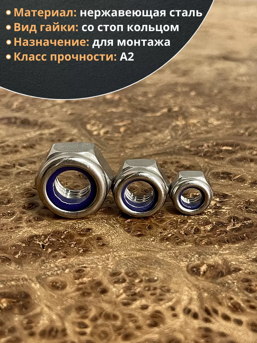 | Гайка со стоп кольцом М6,8,10 нержавеющая (набор по 10шт) | 11603 | 1 шт. |