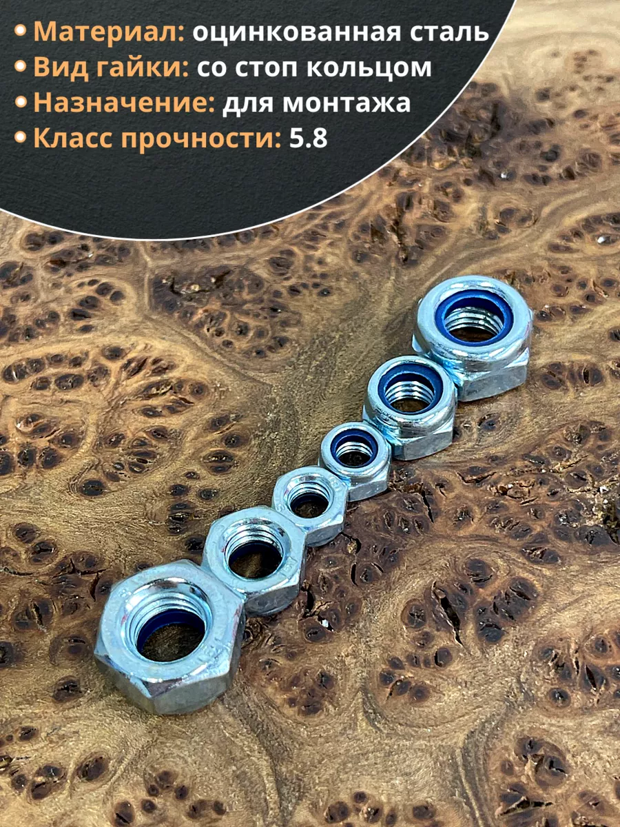 Гайка со стоп кольцом М6,8,10 ОЦ DIN985 (по 50 шт)