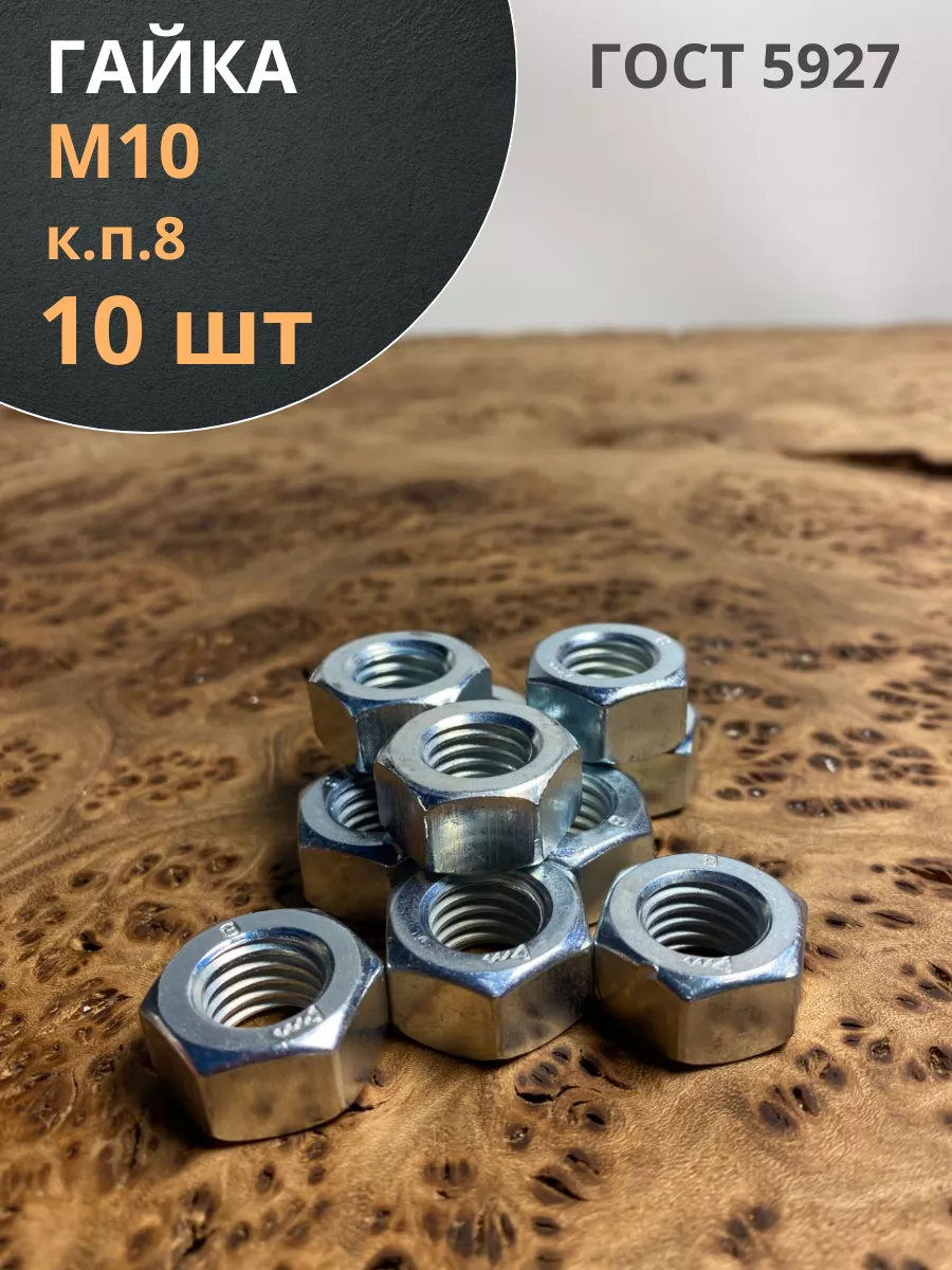 Гайка высокопрочная М10, оцинкованная к.п.8 DIN934 (10 шт.)