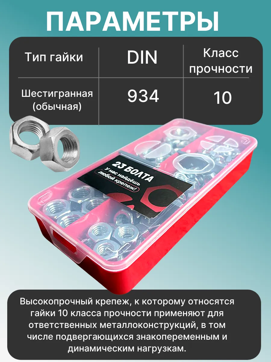 Гайки к.п.10 ОЦ DIN934 М6,8,10,12,14 в органайзере НАБОР 1
