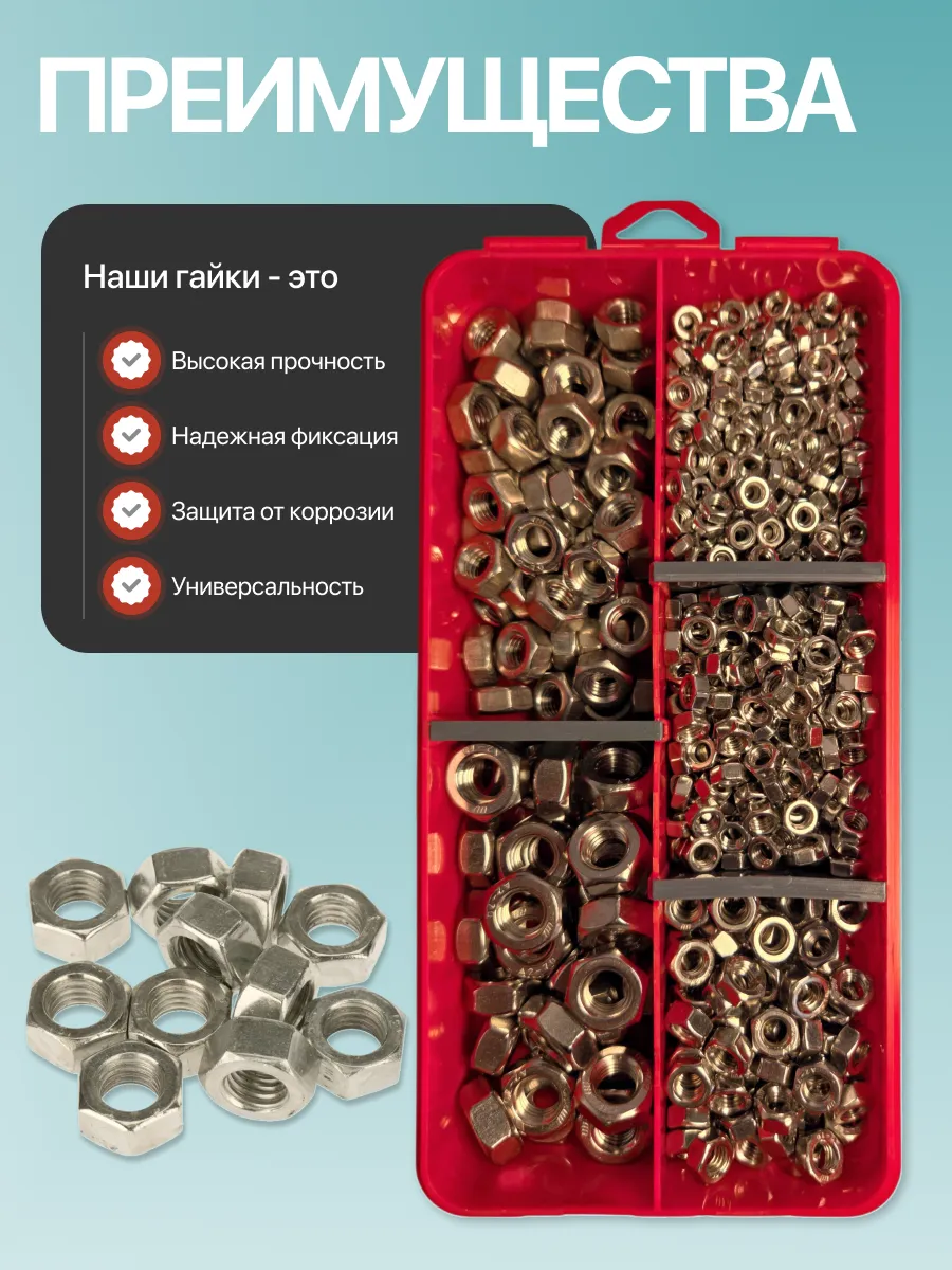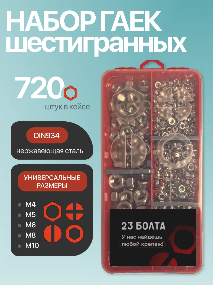 Гайки нержавеющие DIN934 М4,5,6,8,10 органайзер НАБОР 1