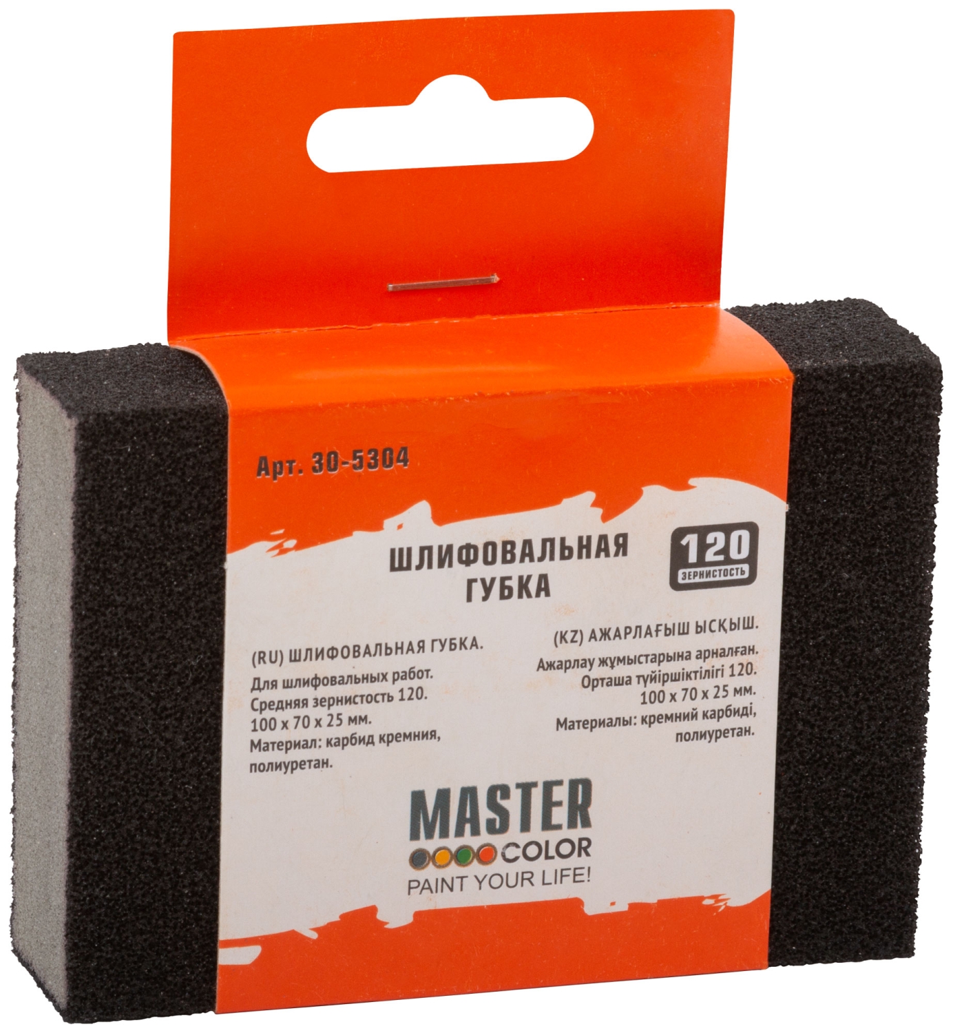 Шлифовальная губка, 100х70х25 мм. Разнозернистая. Водостойкая. Средняя жесткость. Для шлифовальных работ. Абразивный слой-карбид кремния.