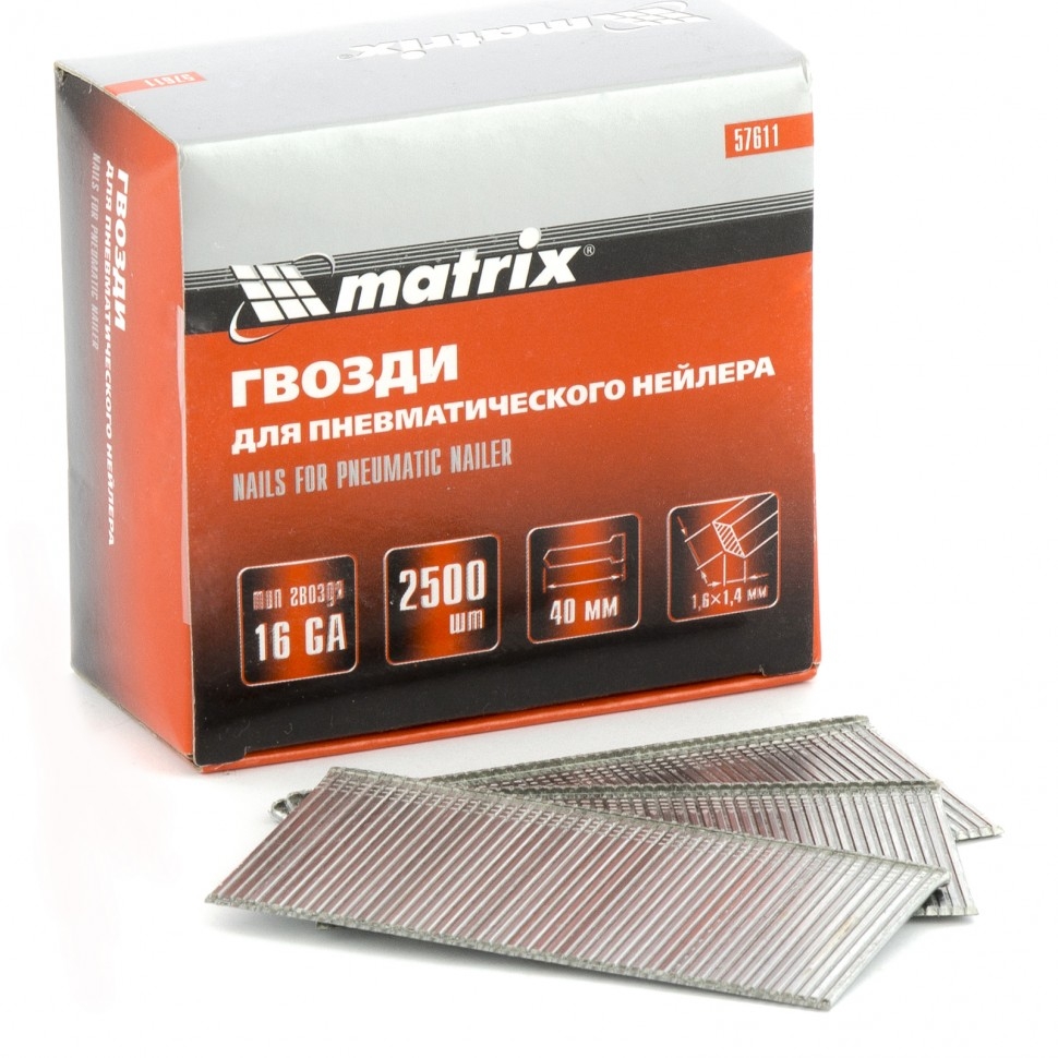 Гвозди для пневм.нейлера 16GA сечение 1,6х1,4 длина 40 мм 2500шт. Matrix