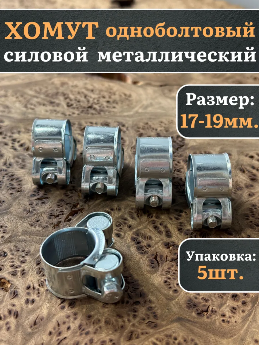 Хомут одноболтовый силовой металл 17-19 мм, 5 шт.