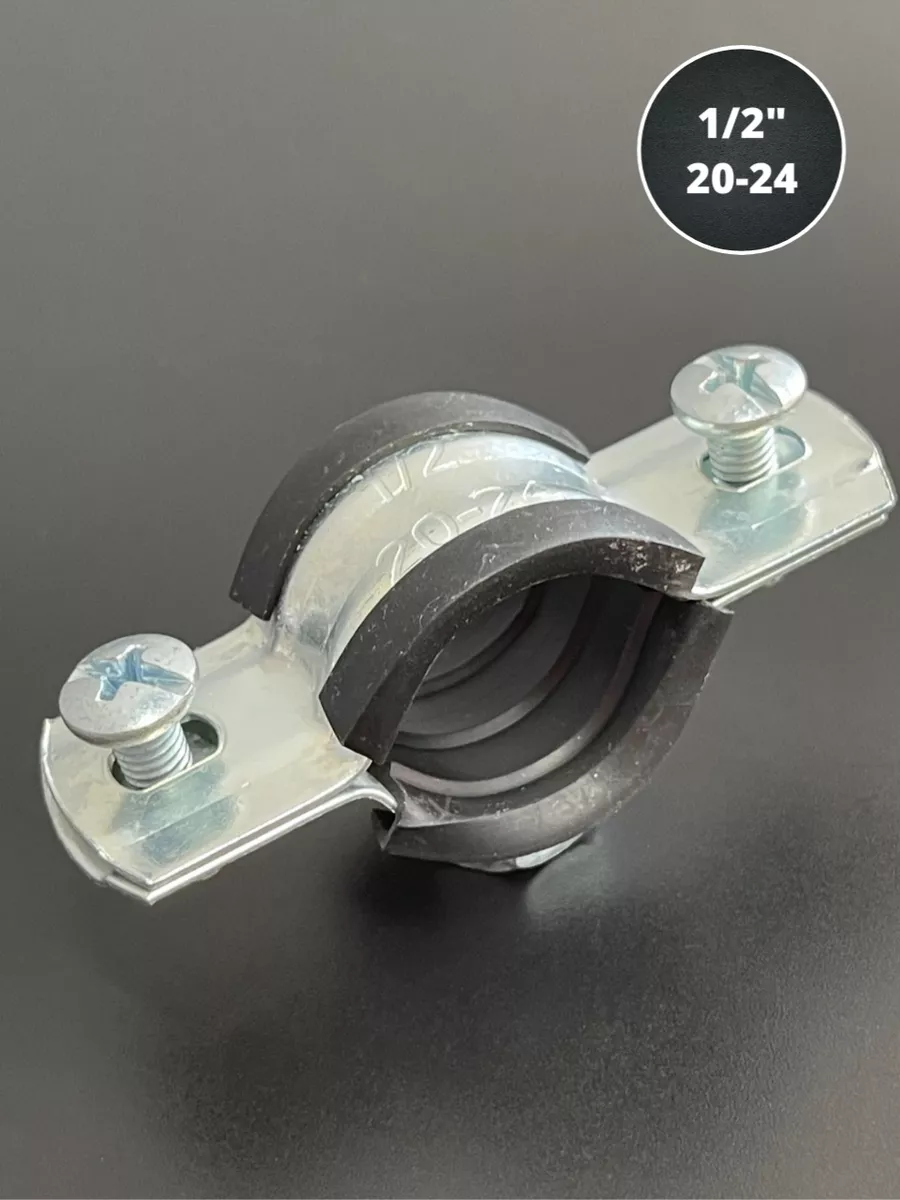 Хомут изготавливается из стали, прокладка - из высококачественной резины. Все металлические детали в обязательном порядке оцинковываются. С помощью трубного хомута трубы могут фиксироваться на полу, стенах или потолке. Данный вид хомута предназначен для надежного крепежа трубопроводов. Используется в сантехническом деле. Пользуется большой популярностью, за счет гарантии надежной фиксации. Материал основания: древесина, металл, бетон, кирпич