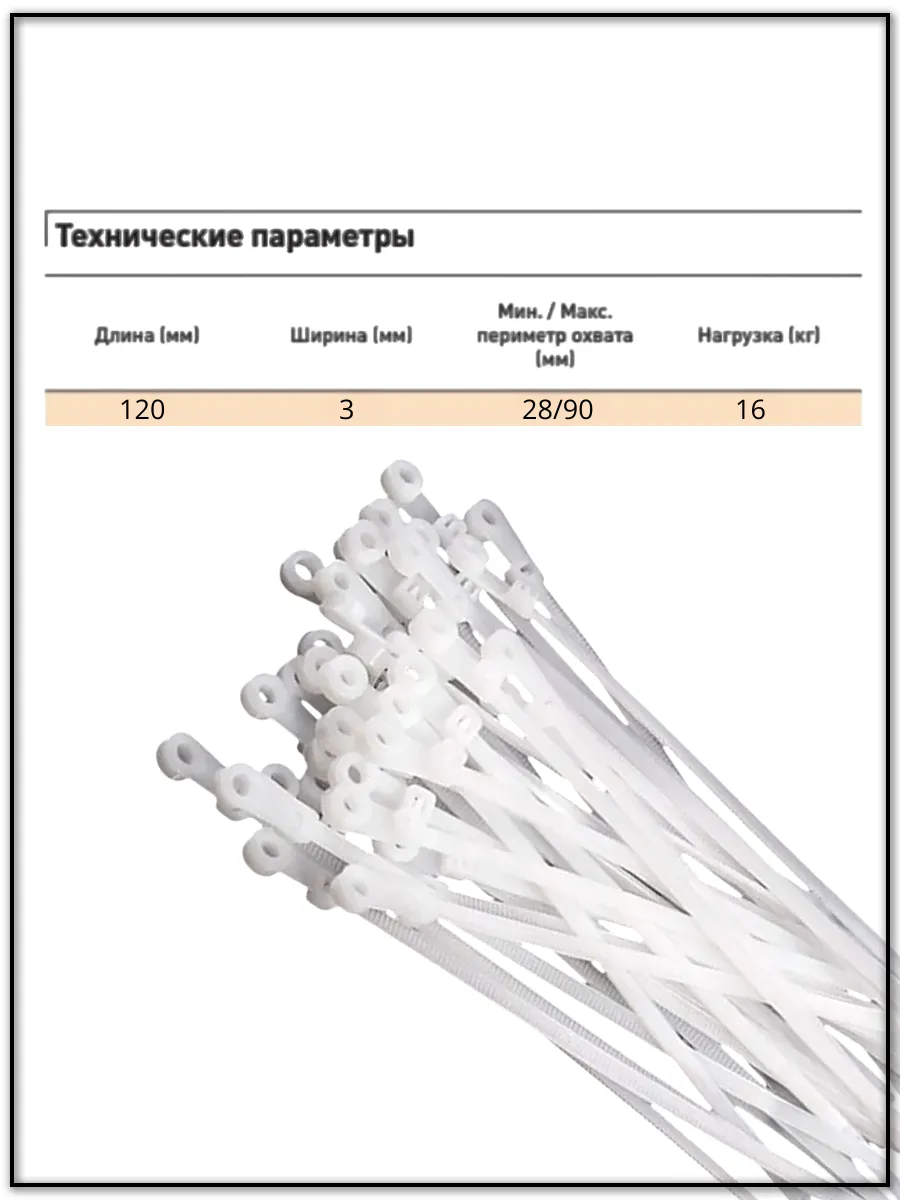 Хомут-стяжка кабельный с отверстием под винт 3х120 мм 100 шт