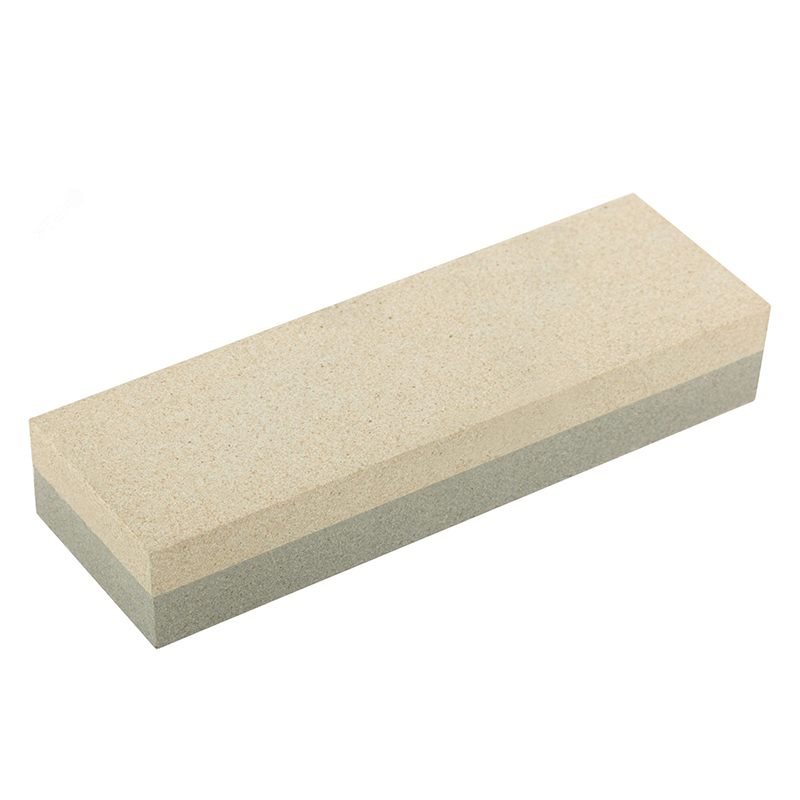 Камень правильный 200х50х25 мм, абразивный предназначен для ручной заточки различных инструментов и используется в бытовых условиях. Он изготовлен из двух слоёв абразивного материала разной плотности, что позволяет выбирать необходимую степень обработки и качество заточки.