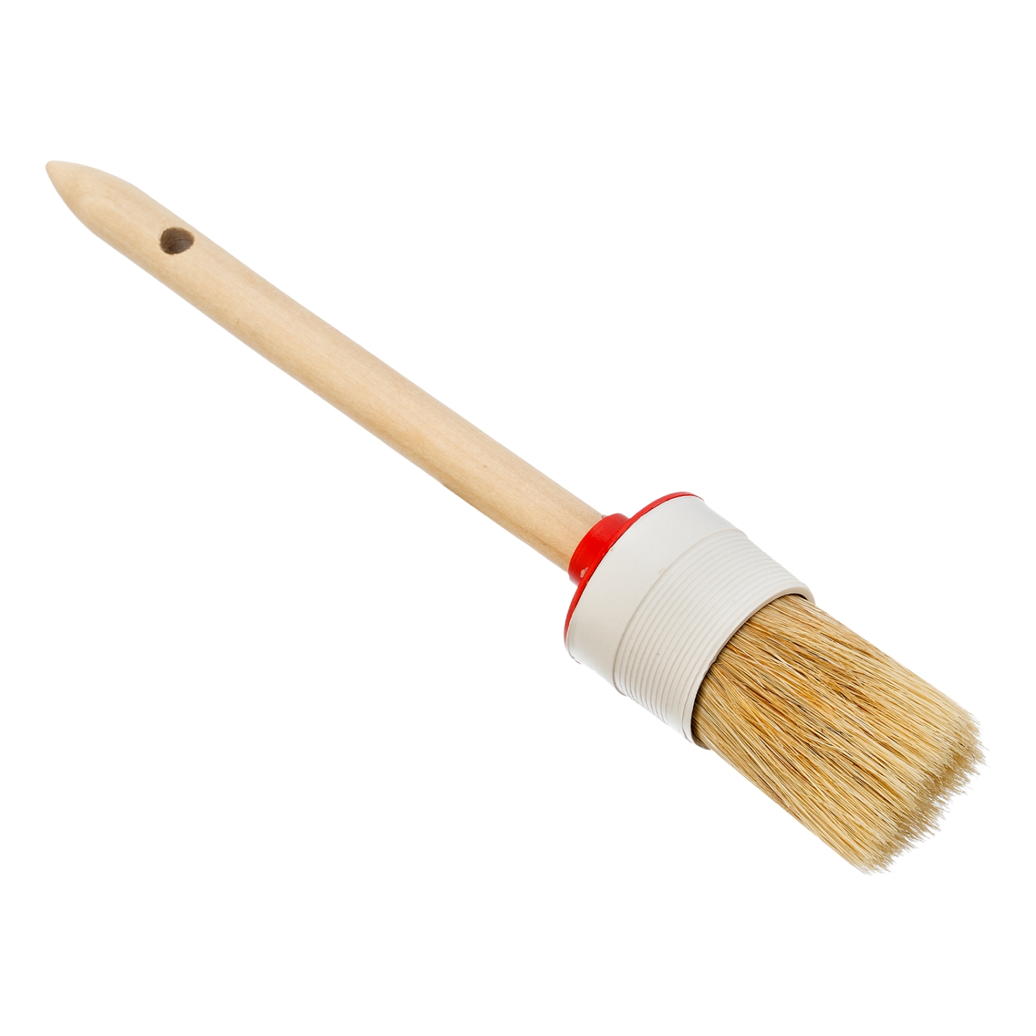 Круглая кисть MTX №10 82080 диаметром 40 мм, с натуральной щетиной и деревянной ручкой, пригодится в быту для окрашивания узких длинных поверхностей. Светлая натуральная свиная щетина с добавлением искусственной обладает высокой износоустойчивостью и может использоваться для нанесения красок с содержанием растворителей, а также масляных красок и лаков.