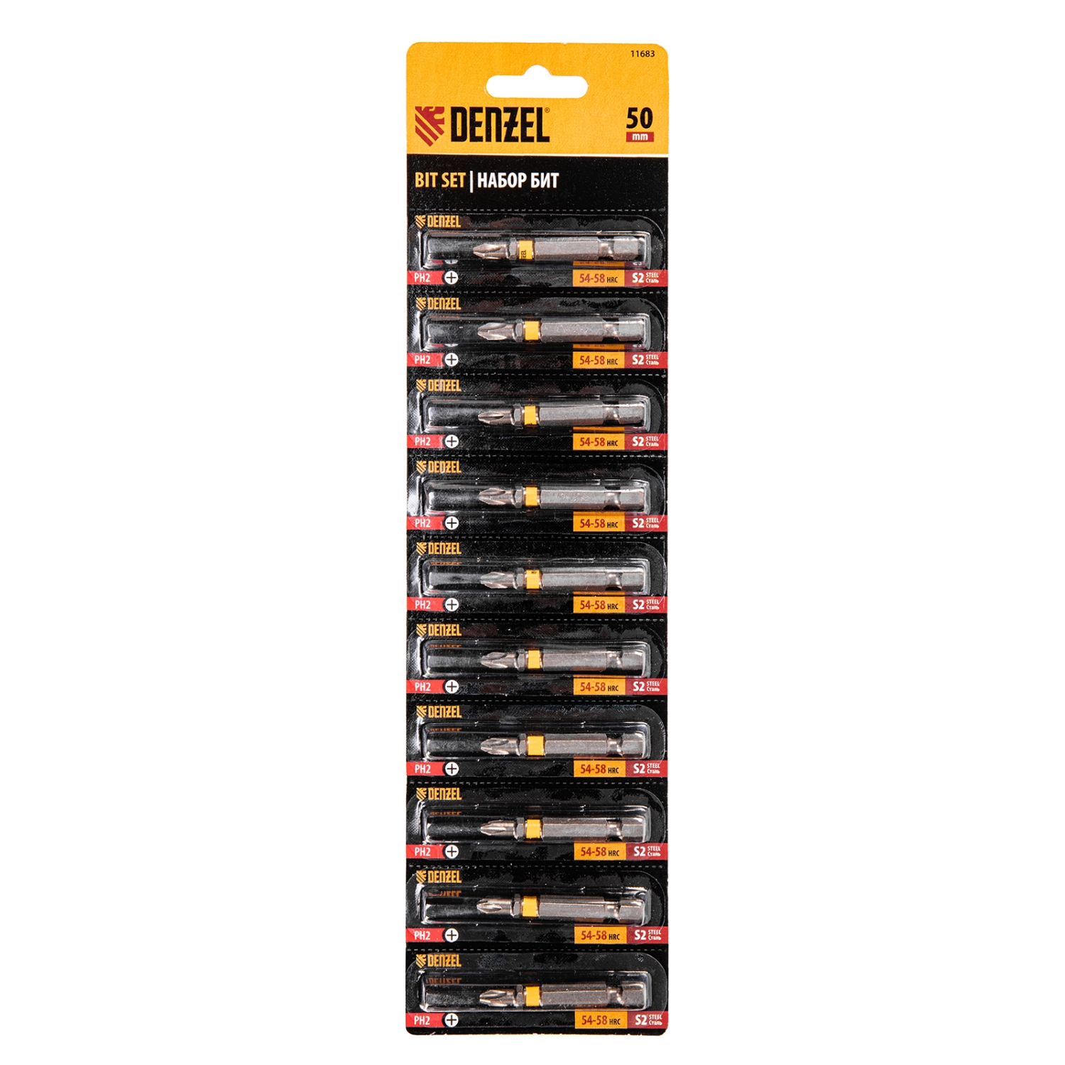 Биты шестигранный профиль сталь S2 PH2х50 отрывн. упаковка Denzel