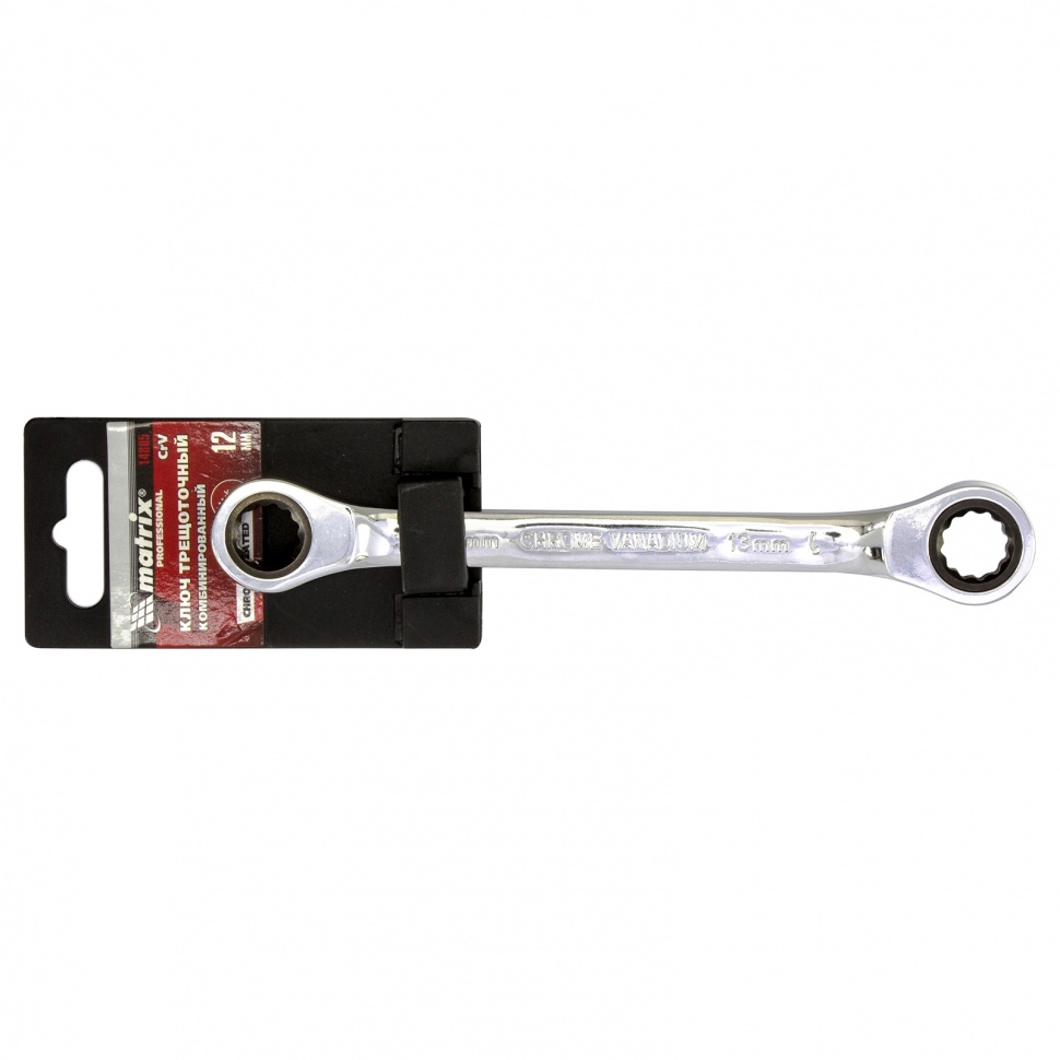 Ключ комбинированный трещоточный зеркальный хром 12 мм CrV Matrix