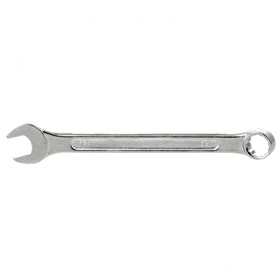 Комбинированный ключ Sparta 150405, 13 мм, хромированный — слесарно-монтажный инструмент для работы с резьбовыми соединениями. 12-гранная накидная головка обеспечивает надежный контакт с поверхностью крепежа, а рожковый зев дает возможность работать там, где применение кольцевого затруднено. Ключ пригодится в мастерской, гараже, будет полезен во время строительства и ремонта. Ключ изготовлен из углеродистой стали марки 45, чем обеспечивается его прочность и хороший ресурс.