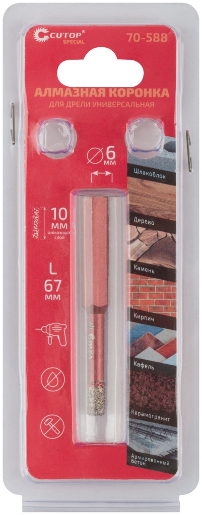 Коронка для дрели, алмазная универс. 6х10х67 мм CUTOP Special