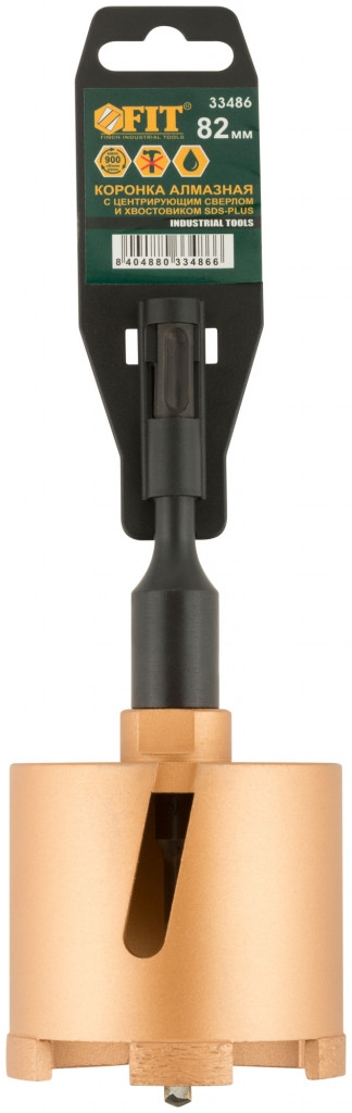 Коронка алмазная с центрирующим сверлом и хвостовиком SDS-PLUS. Для безударного сверления отверстий под монтажные коробки в бетоне и кирпиче. Для работы с водяным охлаждением. Материал: корпус из инструментальной стали, хвостовик и центрирующее сверло из легированной стали, режущая кромка содержит порошок из технических алмазов. Упаковка: пластиковый подвес.