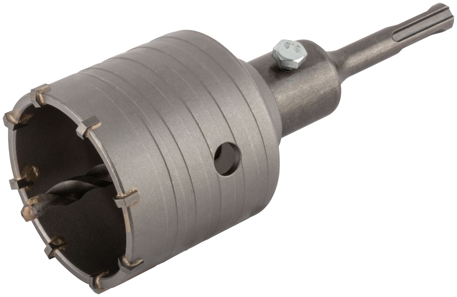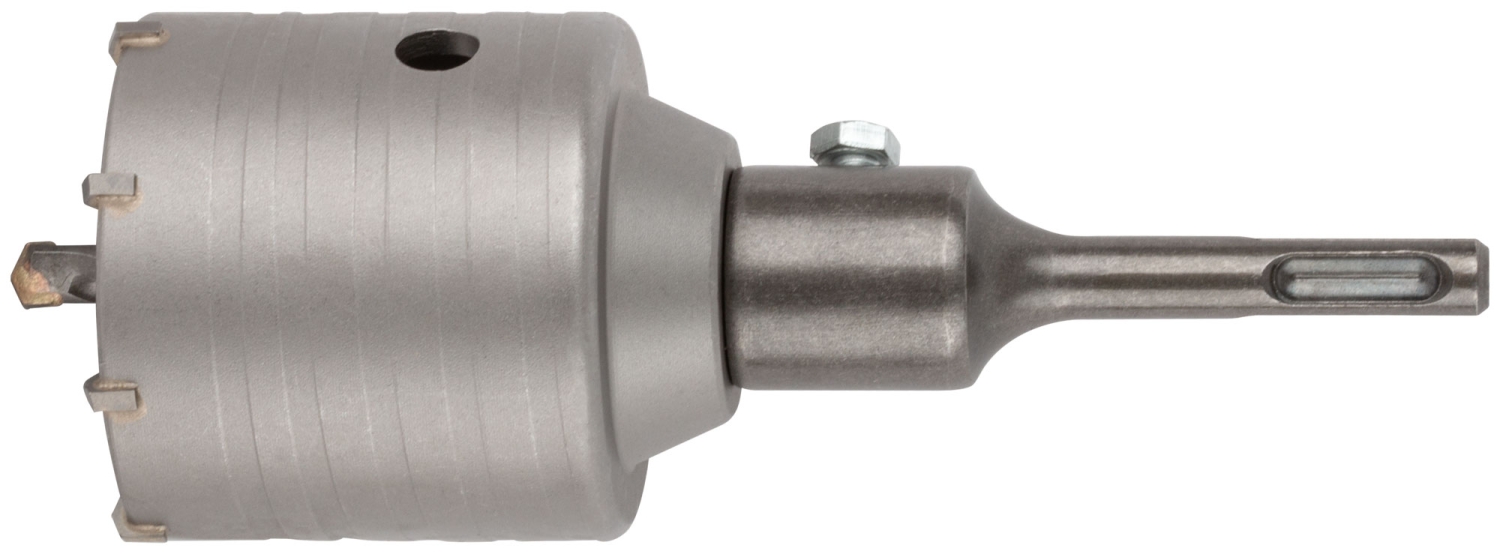 Хвостовик 110 мм. В сборе. Для перфоратора. Для ударного сверления отверстий в бетонных, кирпичных и каменных стенах. Материал: хвостовик и центрирующее сверло легированная инструментальная сталь с добавлением хрома; корпус инструментальная сталь; твердосплавные резцы из карбида вольфрама. Упаковка: пластиковый подвес.