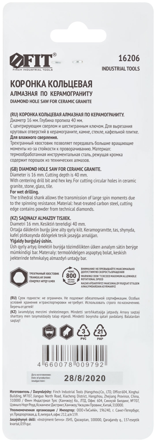| Коронка по керамограниту, камню и кафелю кольцев с центров сверлом 45х67 мм | 16220 | 1 шт. |