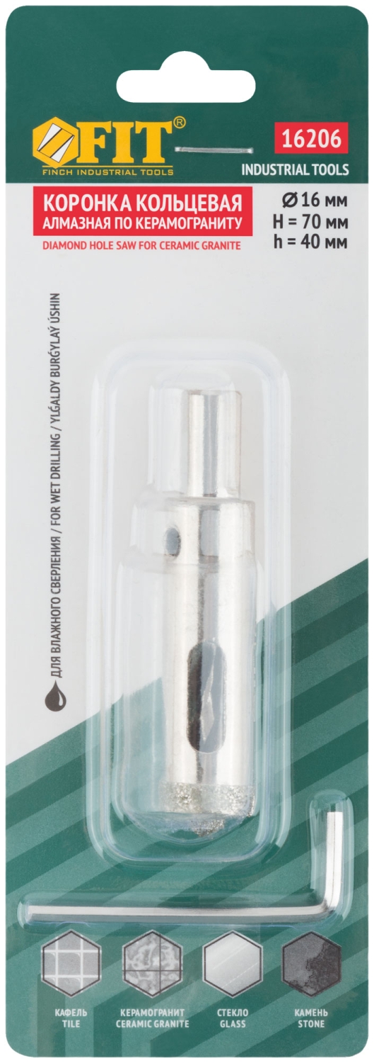 Коронка по керамограниту, камню и кафелю кольцев с центров сверлом 16х70 мм