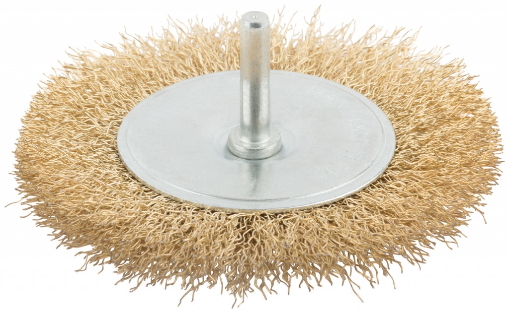 Корщетка-колесо, со штифтом, стальн.латунир.волнист.проволока 100 мм.