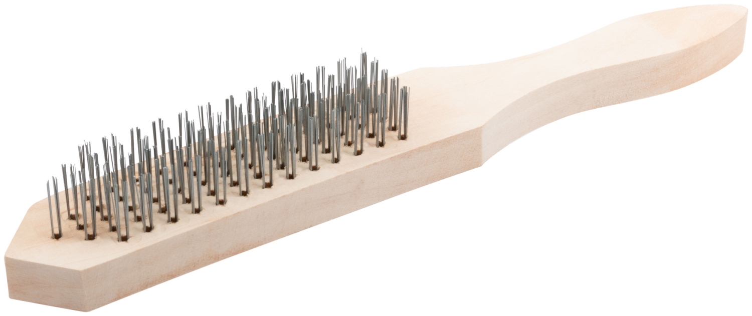 Для снятия старой краски и ржавчины. Материал: усиленная стальная проволока, деревянная ручка.