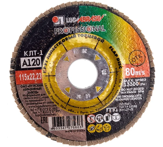 | Круг лепестковый плоский 125х22 мм A 120 КЛТ1 Луга | D91012522140120 | 1 шт. |