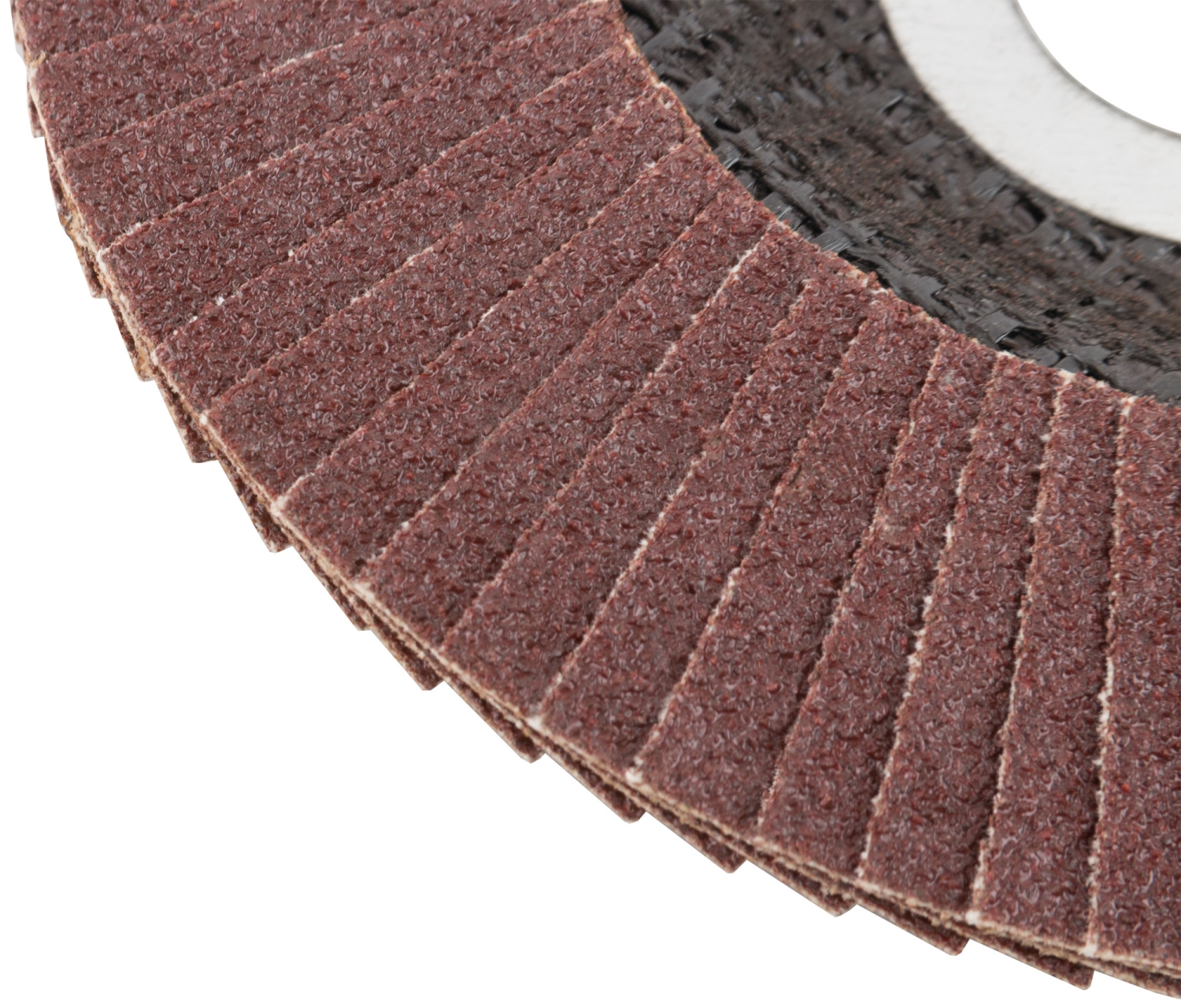 Круг класса "МАСТЕР "для повседневного использования.При изготовлении используется гибкий абразивный материал состоящий из тканевой основы на которую нанесен оксида алюминия --Корунд,Произведено с использованием технологии и контролем качества CUTOP.Наполняемость диска составляет 72 лепестков с углом наклона 10 градусов, что позволяет увеличить площадь контакта обрабатываемой поверхности и КПД круга Предназначен для обработкт металла . Для углошлифовальных машин. Посадочный диаметр 22,2мм