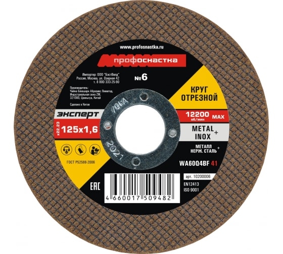 Круг отрезной мет+нерж №06 125х1,6х22 мм Профоснастка Эксперт тип 41