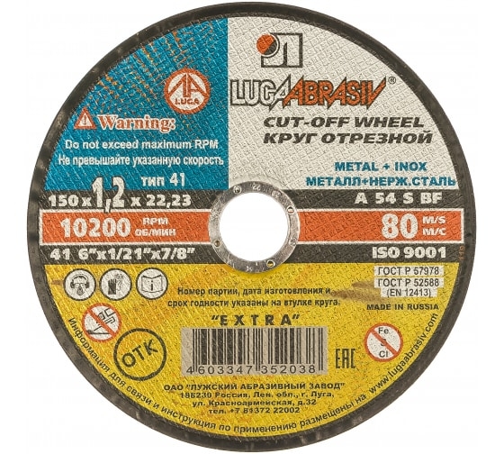Круг отрезной мет+нерж 150х1,2х22 мм A 54 S BF 80 Луга