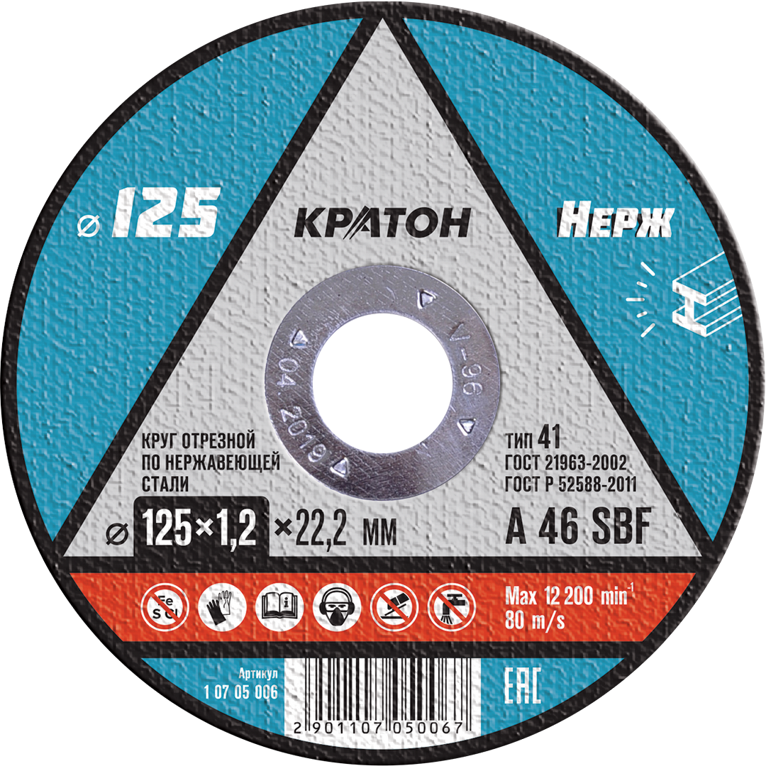 Круг отрезной нерж. 125х1,0х22,2 мм A46SBF Кратон 1 07 05 005 1 шт.