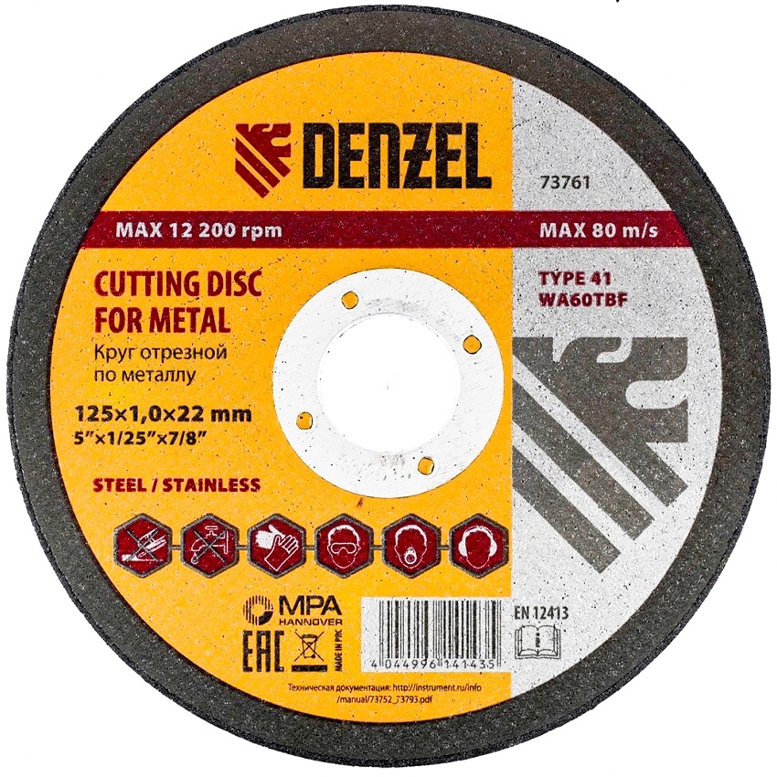 | Круг отрезной по металлу 125х1,6х22,2 мм WA60TBF Denzel | 73763 | 1 шт. |