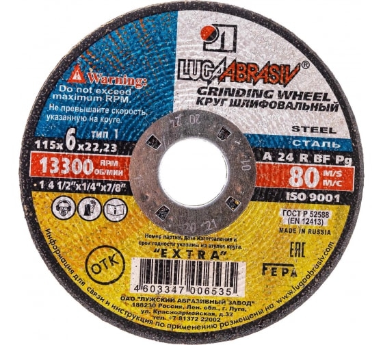 | Круг зачистной металлический 180х6х22 мм A 24 R BF Луга | D11201802260000 | 1 шт. |