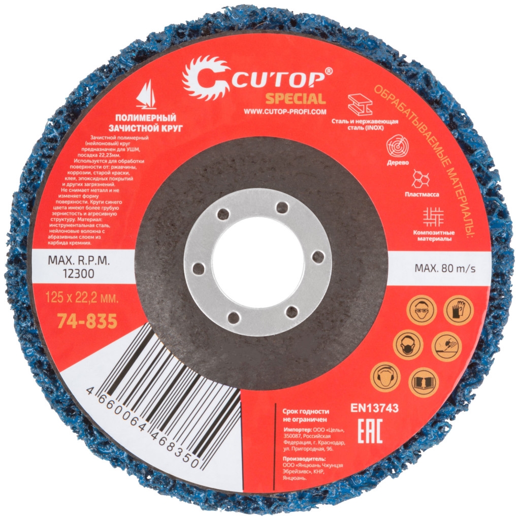 Круг зачистной полимерный для УШМ CUTOP Special 125х22,2 мм синий