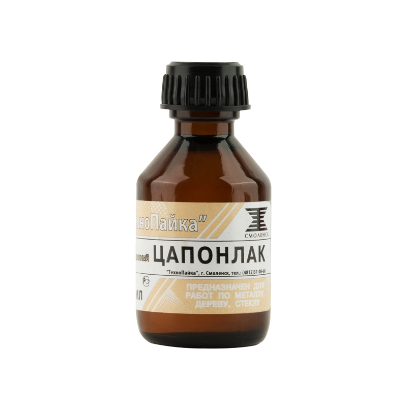 Лак Цапон универсальный бесцветный 30 мл. предназначен для защитно-декоративного покрытия изделий из черных и цветных металлов, кирпича, камня, керамики, дерева, стекла и других материалов, эксплуатирующихся при температуре от -30С до +150С. Также используется для изготовления печатных плат. Быстросохнущий, водостойкий, обладает высокой адгезией и твердостью лаковой пленки. Может смешиваться с различными металлическими (алюминиевая и бронзовая пудра, перламутр) и неорганическими (окись хрома, окись железа, сурик и т.д) пигментами для приготовления красок в домашних условиях, и окрашивания практически любых материалов.