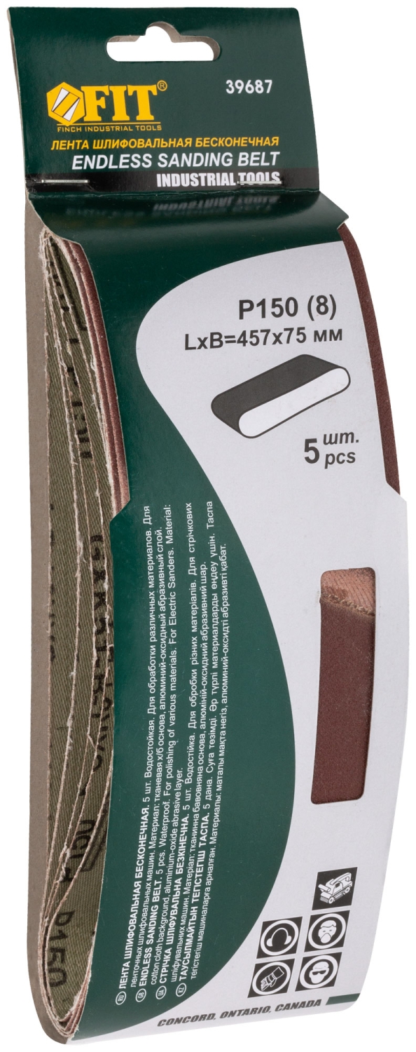 Ленты шлифовальные бесконечные, водостойкие, тканевая основа, 75 х 457 мм, 5 шт. Р 150