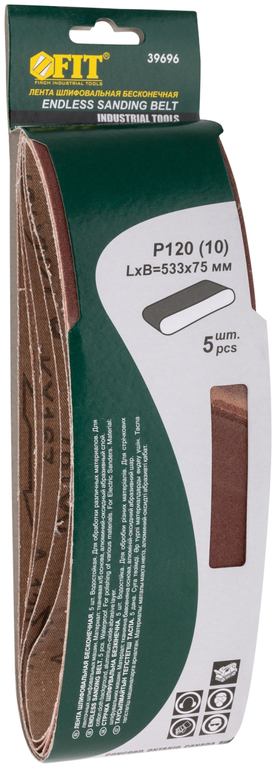Ленты шлифовальные бесконечные, водостойкие, тканевая основа, 75 х 533 мм, 5 шт. Р 120